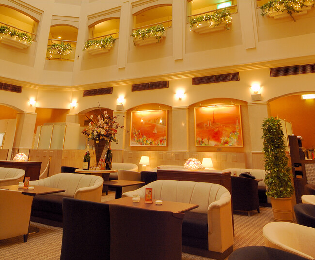 ホテル32階レストランラウンジ「プラシャンティ」。吹き抜けが開放的なアトリウムで心躍る特別なひとときをお過ごしください。