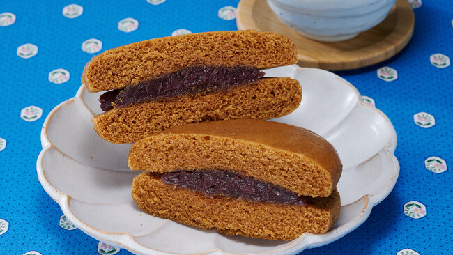 黒糖風味の蒸しパンに小豆の風味豊かなつぶあんをサンドしました。