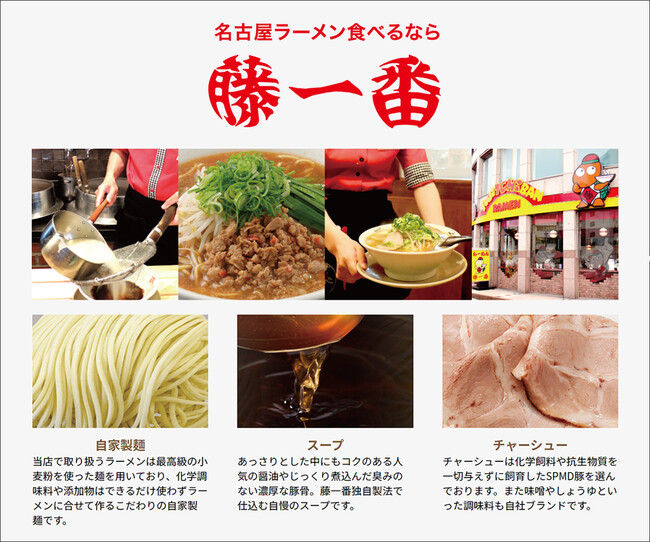 愛知県や東海地区を中心にフランチャイズ展開している『藤一番』は、30年以上の歴史を持ち、お子様からご年配の方まで幅広い世代の方に愛されているラーメン店。麺やスープは自家製、チャーシューに使う醤油や味噌も自社ブランド製品を使い、すべての食材にこだわりを持ってらーめんを提供しております。