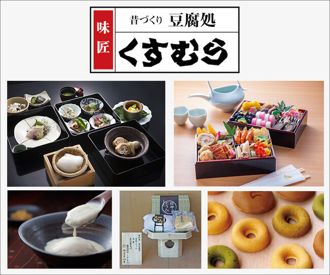 大正13年創業の『くすむら』は、厳選された国産大豆と苦汁(にがり)による、昔ながらの製法を頑固に遵守した手づくり豆腐を提供している豆腐店。豆腐や関連商品の小売りだけでなく、豆腐会席料理店や宅配弁当、おせち料理なども展開しています。