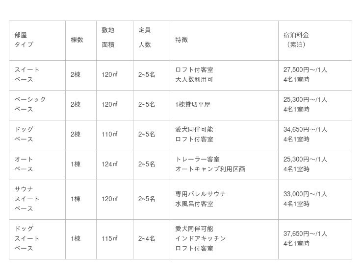 いずれも1棟貸切でプライベートを重視した客室となっています。