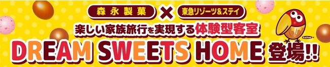 「DREAM SWEETS HOME」は、「泊まる」ではなく「遊ぶ」を目的とした体験型客室です。「たくさんの夢がつまったおかしの家」をテーマに、また戻ってきたくなる、夢のセカンドハウスを目指した部屋を演出します。宿泊いただいたお客様には、「日々いろいろなミッションに挑戦するキョロちゃん」と一緒に、アクティビティへのチャレンジが待っています。お子様が主人公となる宿泊体験を、ぜひお楽しみださい。