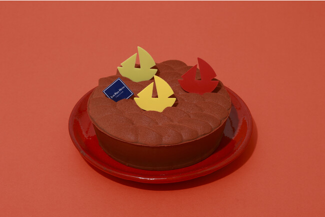 ショコラでできた器に、フランボワーズのムースとペルー産カカオのなめらかなムースを重ねています。ムースの波間に3色の帆船を浮かべました。約6名様用。