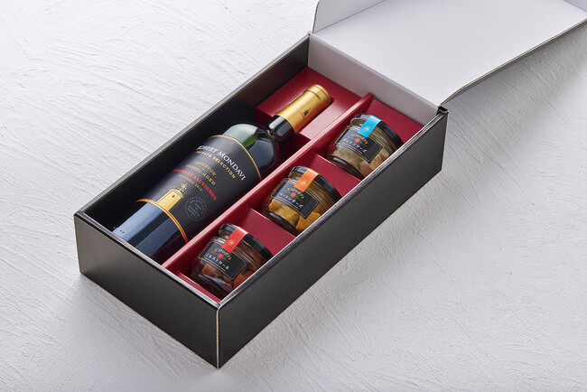 本セットでは、「ビストロポテト」のヴィシソワーズ・ミネストローネ・ベーコンチーズの3種の味わいをそれぞれ瓶に詰め、「ロバート・モンダヴィ バーボン・バレルエイジド カベルネ・ソーヴィニヨン」とともに、特製のギフトボックスにセットしてお届けします。ワイン好きな方へのギフトとしても喜んでいただけるよう、こだわって仕上げました。