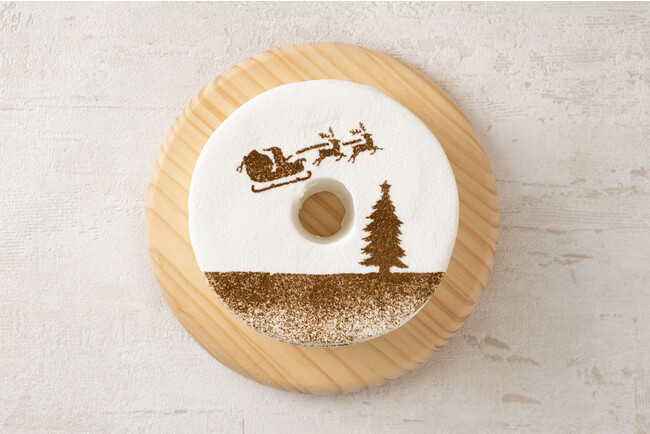 九州産生クリームと国産マスカルポーネを使用したコクのあるクリームでシフォンを包み込み、天面には紅茶パウダーでクリスマスの模様をあしらいました。