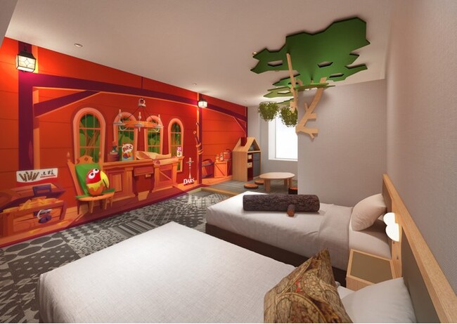 「DREAM SWEETS HOME」は、「泊まる」ではなく「遊ぶ」を目的とした体験型客室です。「たくさんの夢が つまったおかしの家」をテーマに、また戻ってきたくなる、夢のセカンドハウスを目指した部屋を演出します。 宿泊いただいたお客様には、「日々いろいろなミッションに挑戦するキョロちゃん」と一緒に、アクティビティへのチャレンジが待っています。お子様が主人公となる宿泊体験を、ぜひお楽しみださい。