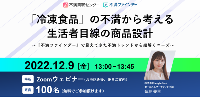 株式会社 Insight Tech(東京都新宿区、代表:伊藤友博、以下 Insight Tech)は、同社が運営する『不満買取センター』に寄せられた冷凍食品に関する不満を『不満ファインダー』を用いて解析・考察したレポートを公開しました。