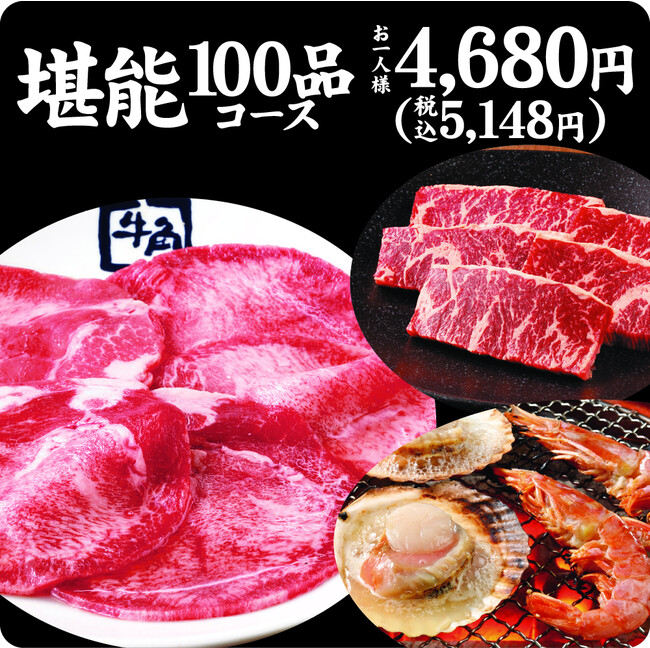 牛タン塩、熟成しやわらかな上ハラミ、甘い脂たっぷりな上ホルモン、北海道産殻付きホタテなど、牛角の魅力を心ゆくまで堪能できます。