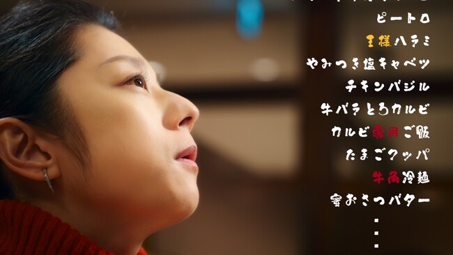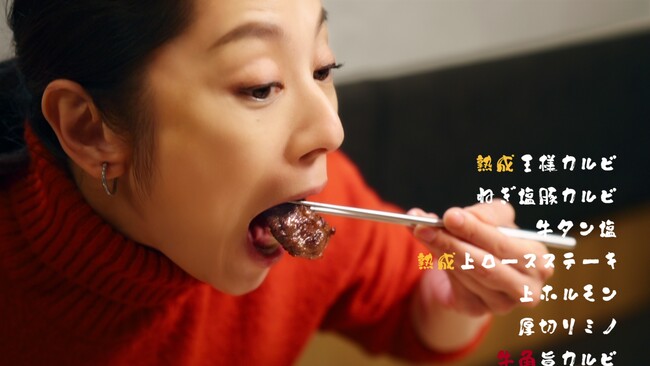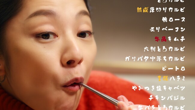 シリーズテーマは「思いっきり、うまい肉。」。こよなく牛角を愛し、焼肉に没入し、堪能する女性役を今回も小池さんに演じていただきました。