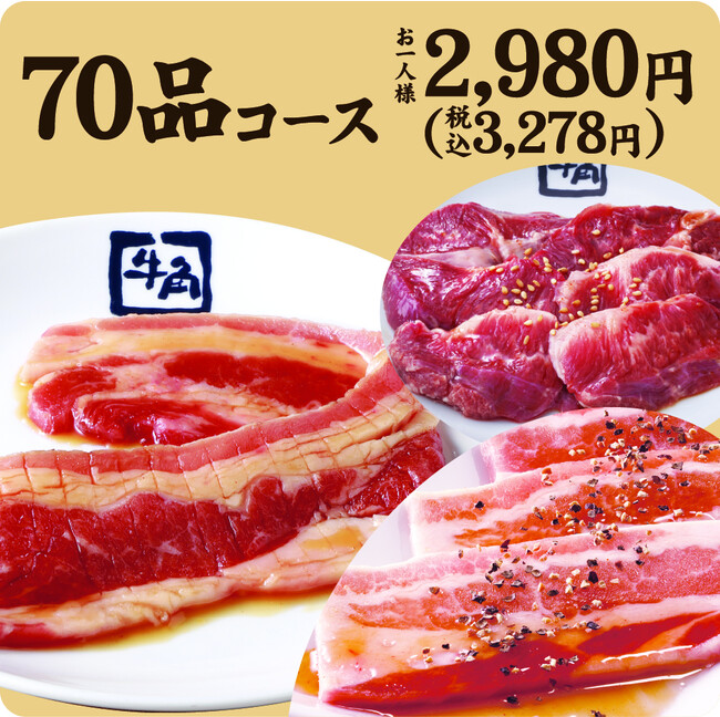 ■牛角90品コース お一人様3,580円(税込3,938円)