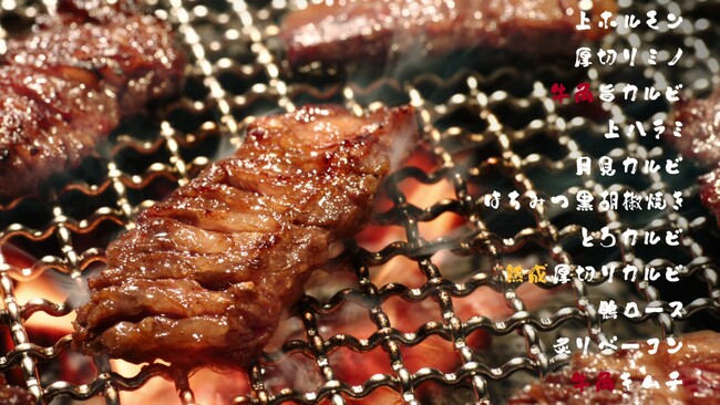 豪快な大判カルビ、コク旨な牛カルビ、黒胡椒とにんにくの効いた豚ハラミから、人気のホクホクおさつバター、カルビ専用ごはんなど豊富なバリエーションが楽しめます。