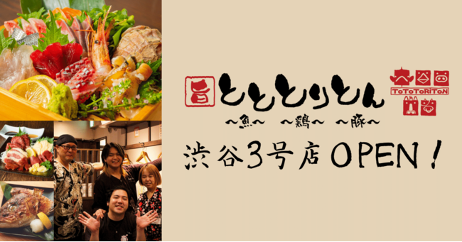 「"楽しい"でつながる世界をつくる」飲食企業である株式会社ファイブグループ(本社:東京都武蔵野市 代表取締役社長:坂本憲史 以下ファイブグループ)は12月1日(木)に東京都渋谷区道玄坂にて「渋谷っ子居酒屋 とととりとん」3号店をオープンします。1号店を渋谷に開いて12年、のべ50万人以上の渋谷人に愛していただき続けた店舗の3号店。たくさんのファンに惜しまれつつ都市開発のため閉店した2号店が進化して帰ってきました。