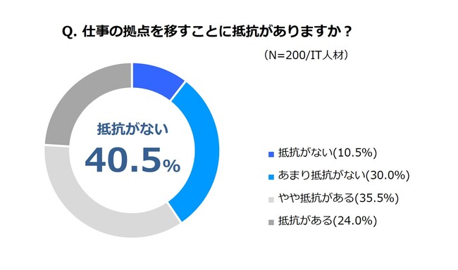 ・IT人材の4割が「仕事の拠点を移すことに抵抗がない」と回答。