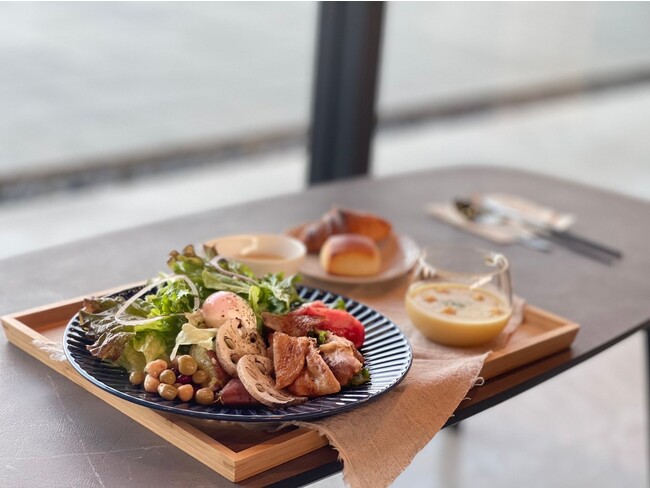 「茨城県のおいしいが食べられる場所」として10月に新設されたカフェテラス。心地よく響く波の音を聴きながら、お気に入りの書籍で読書を楽しんだり、屋外テラス席で海を間近に感じながら波の音を楽しんだり、思い思いのスタイルでお過ごしいただけます。また、屋外テラスは愛犬と一緒に過ごすことができますので、愛犬家の方も是非お越しください。全国一の生産量を誇る“菜果王国”鉾田市のメロンや取れたての葉物野菜をふんだんに使用したサラダランチ、コンテストで受賞歴のある有機栽培の紅はるかを使用した焼き芋や和紅茶など茨城ブランドの“食”体験も。tama海terrasseならではのおもてなしをご堪能ください。