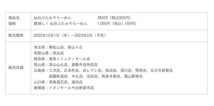 もっとガッツリ味わいたいお客様には、甘辛な豚バラ肉を倍量(100g)もドカンとトッピングした「豚増し! 仙台ぶたみそらーめん」がおすすめです。