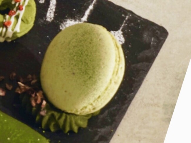 皮にもクリームにもたっぷりとプレミアム抹茶を使用。クリスマスプレート限定の抹茶マカロンです。