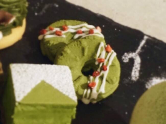 抹茶のリースクッキーをクリスマスデザインでデコレーション。可愛らしい一口サイズのリースクッキー