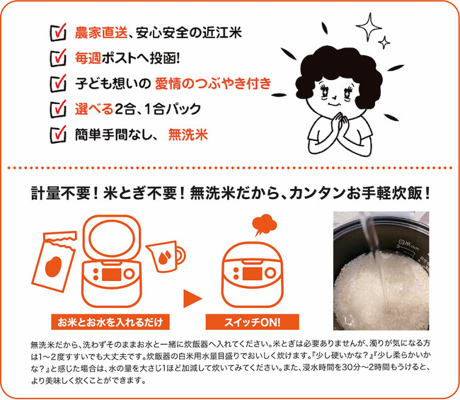 保管も簡単で、電子レンジ対応の炊飯器でも簡単に炊くことができ、無洗米ならなおさらです。