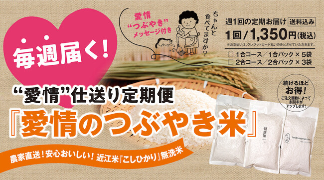 愛情のつぶやきメッセージ付きお米の仕送り定期便 『愛情のつぶやき米』。