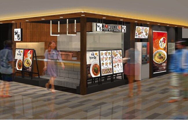 今回出店するUMEDA FOOD HALLは、阪急三番街の地下に位置し、好きな料理を共有の卓上に持ち寄り楽しめる、いつでも誰でも楽しめる空間です。開業後初のテナント入れ替えに伴い、どうとんぼり神座が出店する運びとなりました。