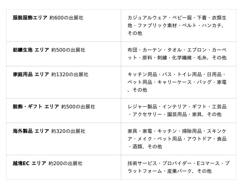 - 中国随一の規模と効率性前回開催時には3,250社・5,200以上のブースが出展。ファッションから生活用品、雑貨まで、多ジャンルの製品・素材を一度に比較検討でき、効率的な仕入れ先の発掘が可能です。
