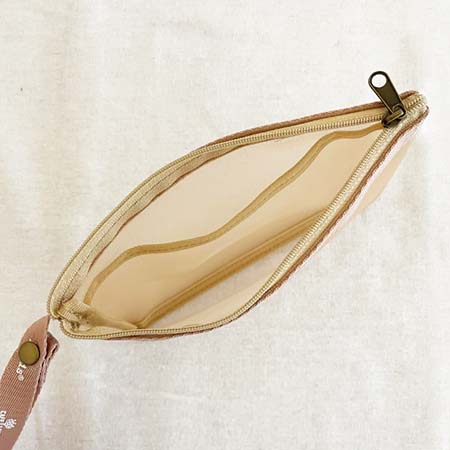 B6サイズで内ポケット1つを装備。ループつきのため手持ちしやすく、バッグに取りつけて貴重品入れとして使っても便利です。