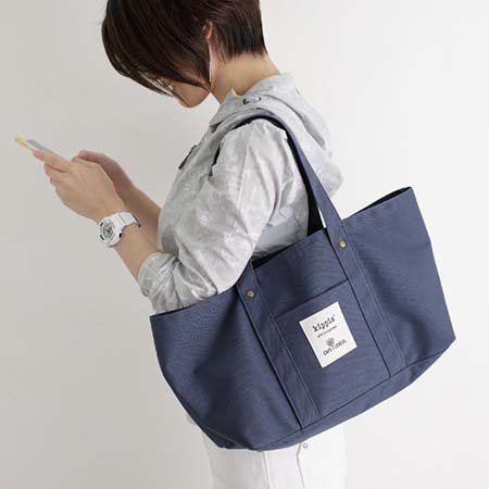 レジャーシーンでも頼れる、大きめトートバッグ。開口部にはホックつき。閉じれば防犯性がUPするつくりです。