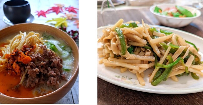 左:豆腐干の豆乳担々麺(https://snapdish.co/d/CezKSa)