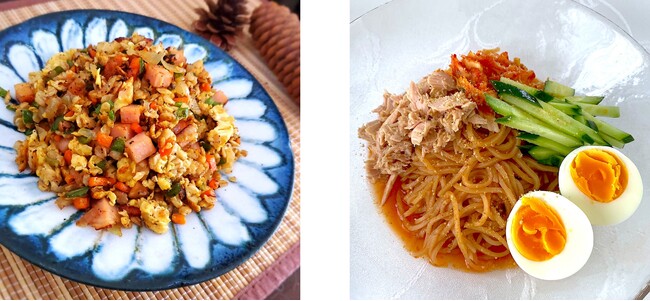右:グルテンフリー玄米麺で汁なし韓国冷麺(https://snapdish.co/d/WOKP8a)