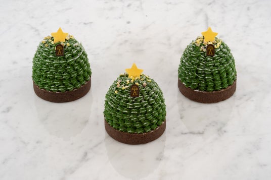 日本初登場!クリスマスツリーをモチーフにした、可愛らしいモンブラン。ショコラタルトにマロングラッセ入りのマロンケーキを重ね、濃厚なマロンクリームでツリーを表現しました。中にはたっぷりのクリームとピスタチオの風味豊かなムースを忍ばせました。