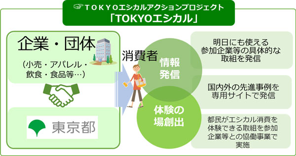 本プロジェクトでは、東京都がエシカル消費につながる取り組み・サービスを提供している約90もの企業や団体とネットワークを構築し、都民がエシカル消費を実施しやすい環境の創出を目指します。