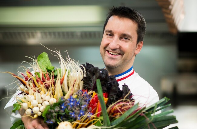「ラ・セール」「ホテル・ムーリス」など名門レストランでの修業を経て、弱冠38歳にして国家最優秀職人賞(M.O.F.)を受賞。現在は、シャンパーニュ地方・ランスに佇むシャトー「ドメーヌ レ・クレイエール」の二つ星レストラン「ル・パルク」とブラッスリー「ル・ジャルダン」の総料理長として活躍する実力派シェフ。「ル・パルク」のシェフ就任からわずか2年でミシュランの二つ星を獲得、2008年のボキューズ・ドール国際料理コンクールで3位入賞を果たすなど、“グランド・キュイジーヌの大いなる希望の星”として国内外で高く評価されています。