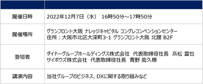 当日は、当社グループのビジネス、DXに関する取り組みなどを講演する予定です。