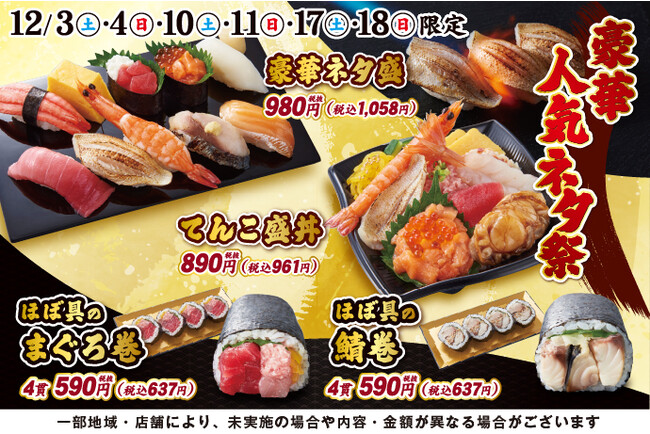 豪華ネタ!人気ネタが満載!!食べ応え抜群!『豪華人気ネタ祭』を開催します!!