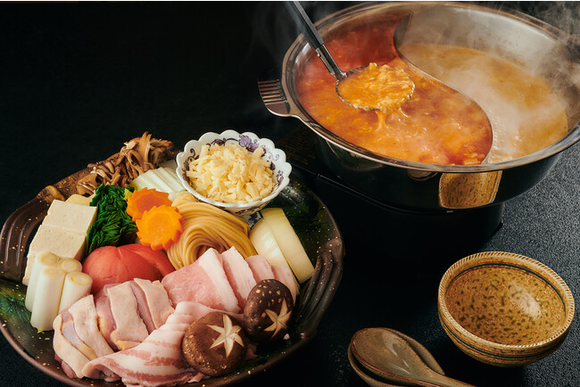 【宿の自慢鍋】熊本もも太郎鍋と胡麻豆腐の二色鍋