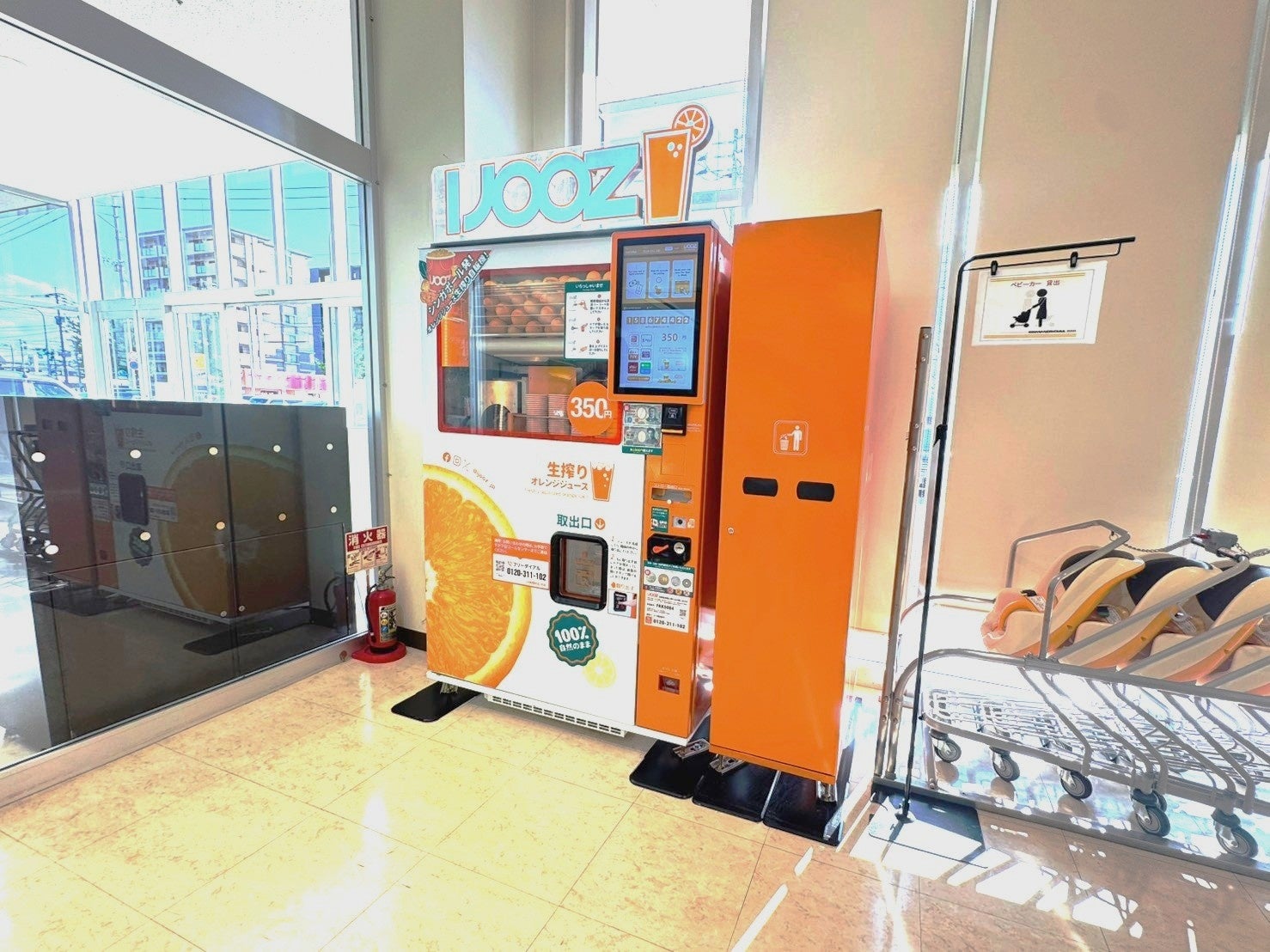 コマーシャルモール博多にて稼働する生搾りオレンジジュース自販機IJOOZ