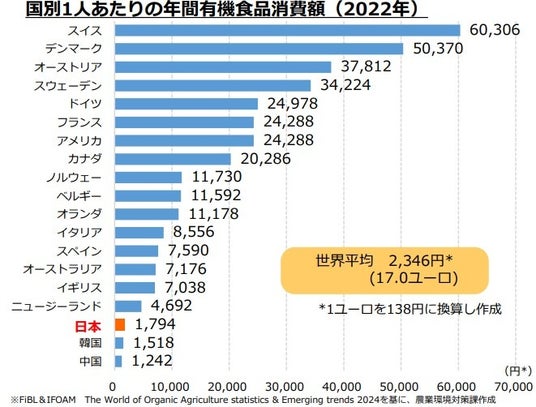 図3 国別1人あたりの年間有機食品消費額(2022年)