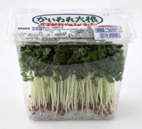 当時発売された無化学肥料かいわれ(現在はパッケージを変えて販売中)