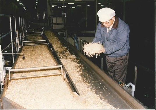 ■1973年 サラダコスモの原点 ”無添加無漂白もやし※1”の開発まだサラダコスモの前身の「中田商店」だった1973年、もやしは漂白して製造することが当たり前でした。もやしを漂白すると、色が白くなって日持ちもするようになる。けれど体によくないものを使用していて果たしていいのだろうか。お客様に自信をもってお届けできるもやしとは?社長である中田が考え、たどり着いた答えが”無添加無漂白もやし”でした。