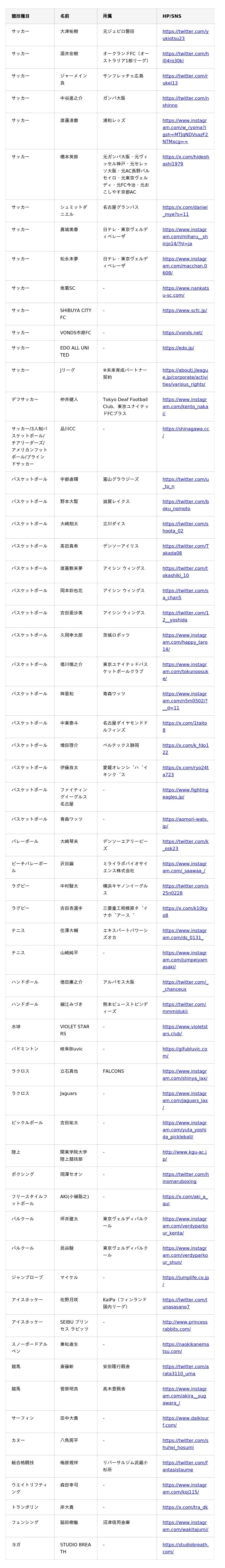 <BASE UP SPORTS サプライヤー契約一覧(現時点)>