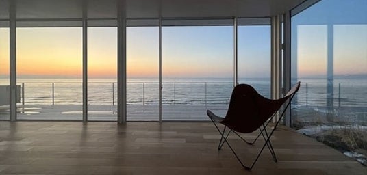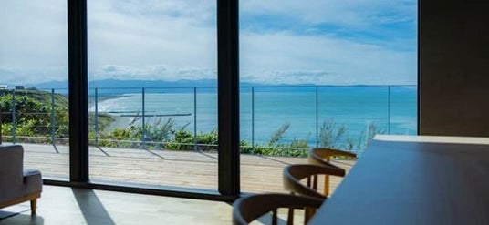 「the望来」は望来にある別荘集積地から少し離れた海抜30メートル超の急峻な崖の淵に建つ4棟の貸別荘。全て左右180度の視界が開けた、海を望む大きな窓を持つ、1棟貸しの別荘である。
