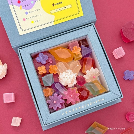 ハラペコラボは、福岡を拠点に活動する女性中心のクリエイティブブランド。「アートと食の融合」をテーマに、鉱物のように美しい琥珀糖『こうぶつヲカシ』や、色彩と素材にこだわったスイーツ・ケータリングを展開。開発・制作・パッケージデザインまですべてを手作業で行い、“どれひとつとして同じものはない”唯一無二の美しさと想いを届けています。有名ゲーム、有名アニメとのコラボ作品、百貨店催事、雑誌・TVなど多数メディアでも話題に。贈り物として、また自身のライフスタイルを彩るアイテムとして、全国のファンから支持を得ています。【会社概要】