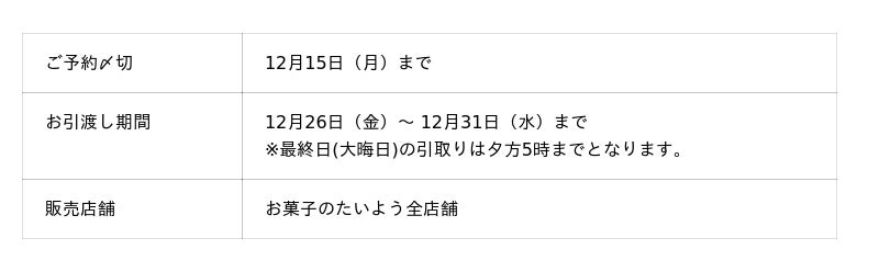 株式会社太陽社(所在地:千葉県匝瑳市飯倉293、代表取締役:片岡正裕)が展開する、千葉県で長年愛され続ける菓子店「お菓子のたいよう」では、今年も正月限定の鏡餅・のし餅・栗きんとんの予約を開始いたしました。