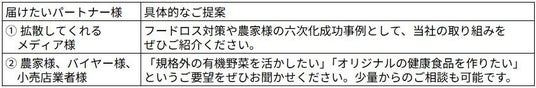 カドウフーズは、この事業を通して「持続可能な食のサイクル」を共に創ってくださるパートナー様を求めています。