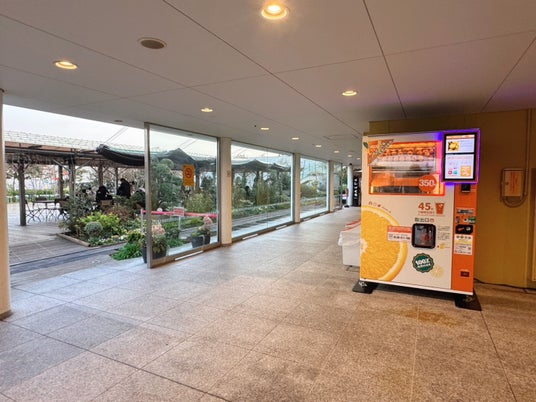 JR博多シティ屋上庭園「つばめの杜ひろば」にて稼働する生搾りオレンジジュース自販機IJOOZ