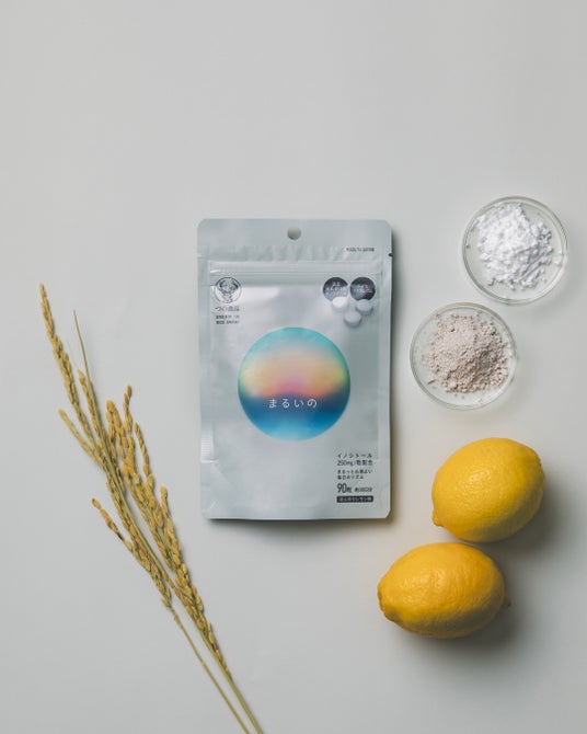 「まるっと心地よい毎日のリズム。」今、注目されている成分の一つ「イノシトール」をキー成分としています。イノシトールはビタミンB様物質で、世界中で古くからサプリメントや機能性食品に使用されている素材です。築野食品工業株式会社が製造している「国産の米ぬか由来イノシトール」を1粒に250mg配合。忙しい毎日のお供として「イノシトールを気軽に生活に取り入れてほしい」という思いで、ほんのりレモン味のチュアブルに仕上げました。イノシトールのほんのりとした甘さを生かした「おいしく、噛んで食べる」インナーケア商品です。