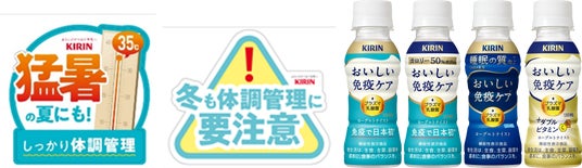 「キリン おいしい免疫ケア」「キリン おいしい免疫ケア カロリーオフ」「キリン おいしい免疫ケア +ダブルビタミン」