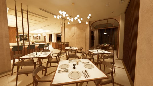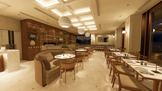 「URBAN CLASSIC COMFORT」 をデザインンコンセプトに、創業者サラベス・レヴィーンが深い愛情を込め、紡いてきた料理の“味と彩り‘’を一層引き立たせる空間にフォーカスしました。都会的な表参道の喧噪から一歩入った路地沿い、「GREEN TERRACE」の名の通り、大地をイメージした柔らかなフォルムとスモーキーカラーの外壁、緑の木々に囲まれ心地よい風と穏やかな陽ざしを感じられる建物2階に立地、その空気感を引込みながら、木や石目調の自然素材による柔らかな色調と飽きのこないシンプルな設えに、ブルーをアクセントに配することで、表参道の上品でクラシカルな街並みに溶け込みながら、落ち着きの中にさりげない華やぎが添えられています。