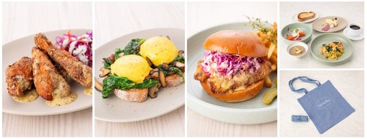 オープンに際し、これを記念したサラベス・ロゴ入り リサイクルコットンエコバッグ(非売品)を制作、対象コースメニューのご注文のお客様にプレゼント(※限定数、なくなり次第終了)します。また、ニューヨークの最新食トレンドを体現した店舗限定メニューをご用意し、お客様をお迎えします。