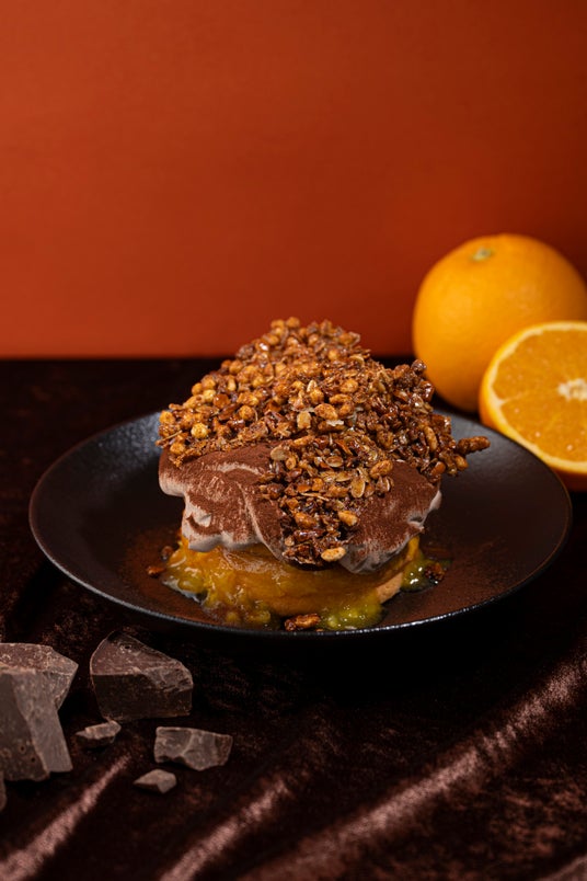 パフェ オランジュショコラ 1,600円(税込)自家製のガナッシュに北海道産マスカルポーネとチョコレートプリン、オレンジソースを重ねた、甘さ・ほろ苦さ・酸味のバランスが絶妙なパフェ。